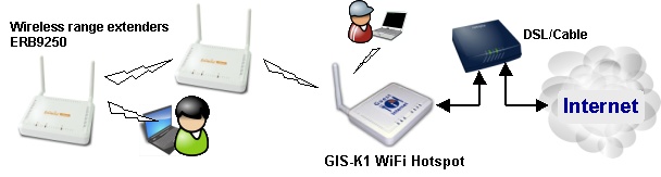 It is also important to minimize the monthly cost of the DSL or cable service. All telecom companies offer a range of services, from the $30 medium speed service to a $100 fast business service. The $30 service can be used with the GIS-K1 because it has something called bandwidth control which prevent on guest swamping the service and making it slow for everyone else. The range of the GIS-K1 might be limited for some business however wireless range extenders can be used with the GIS-K1 to cover a much larger area and they cost less then $50 each.